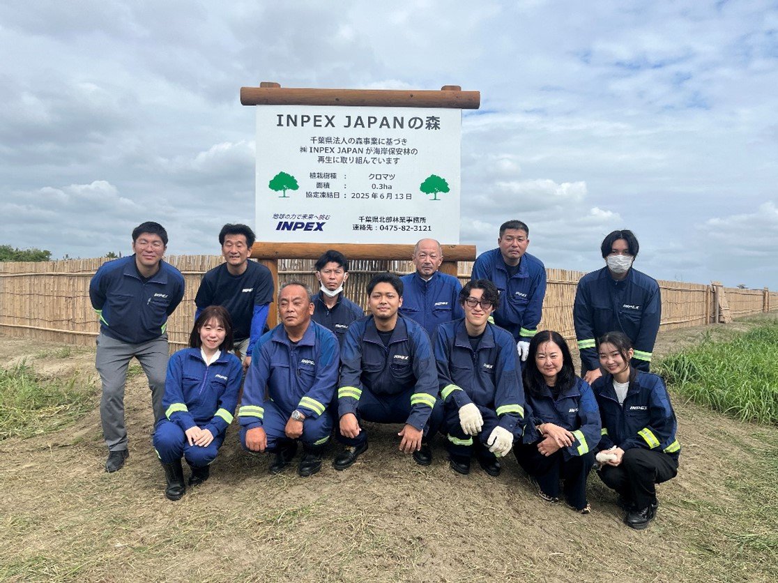 株式会社INPEX(以下、当社)は、当社の100%子会社である株式会社INPEX JAPAN(以下、INPEX JAPAN)を通じて、INPEX JAPAN千葉鉱場に近接する千葉県山武市蓮沼海岸において、本年より「千葉県法人の森事業」に参加しています。千葉県では、県有林において企業や団体が社会貢献活動として森林整備を行う「法人の森事業」を推進しています。