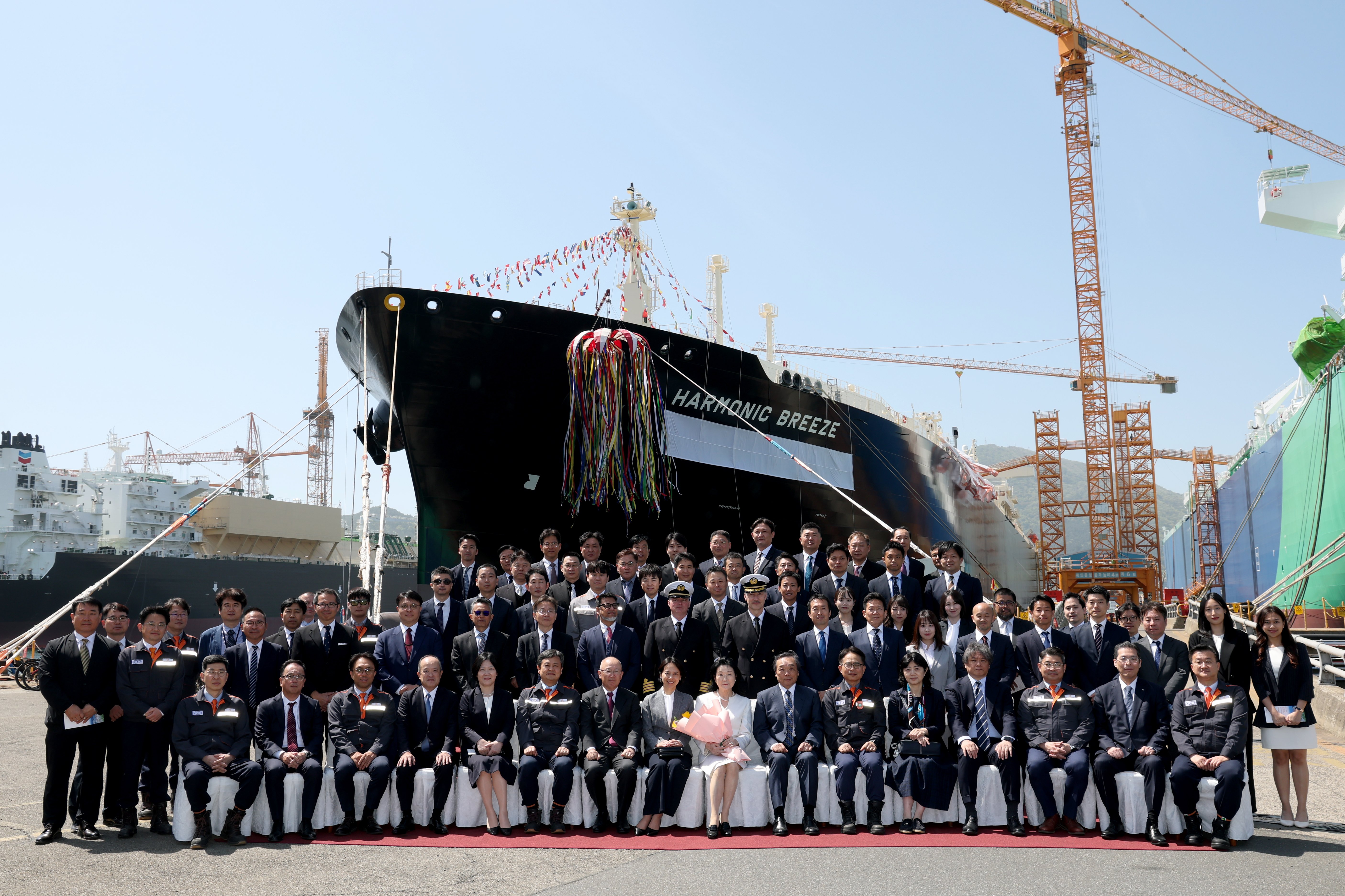 命名式は、本船建造に関わる多数のご来賓のご臨席の下執り行われ、本船は「ハーモニック・ブリーズ(HARMONIC BREEZE)」と命名されました。当社からは上田代表取締役社長が出席いたしました。